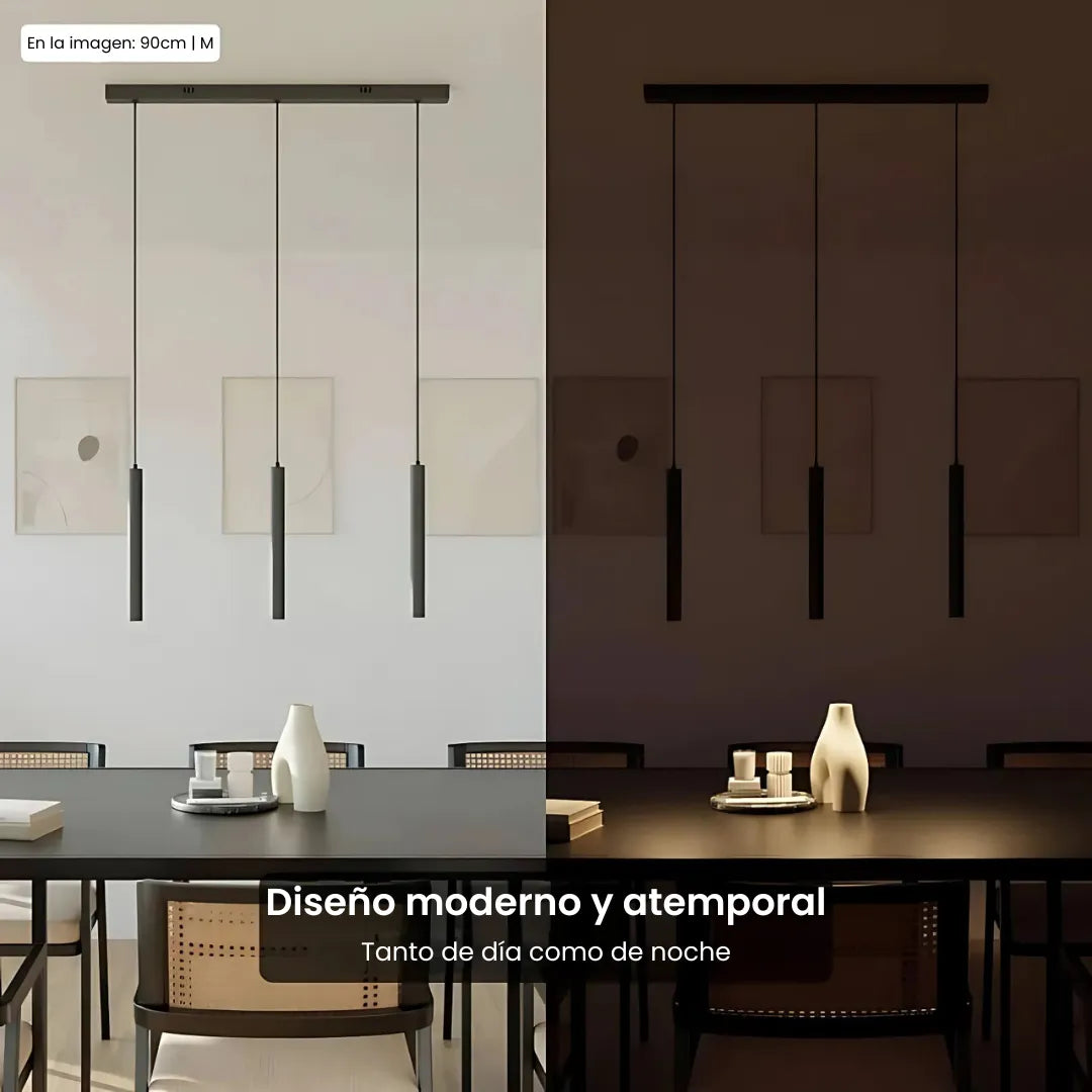 La lámpara colgante Learis combina un diseño moderno con una iluminación acogedora en un modelo atemporal. Con sus cuatro finos colgantes negros, aporta calma y elegancia, convirtiéndose en la elección perfecta para colocar sobre la mesa del comedor, la isla de cocina o en un rincón acogedor de la sala.