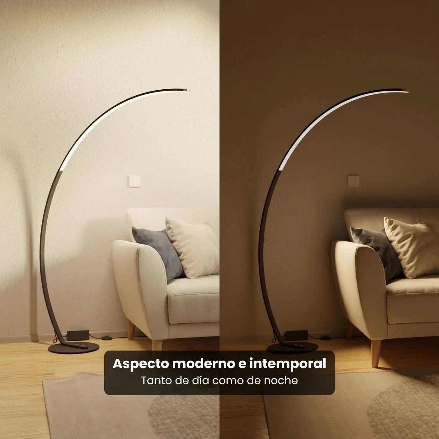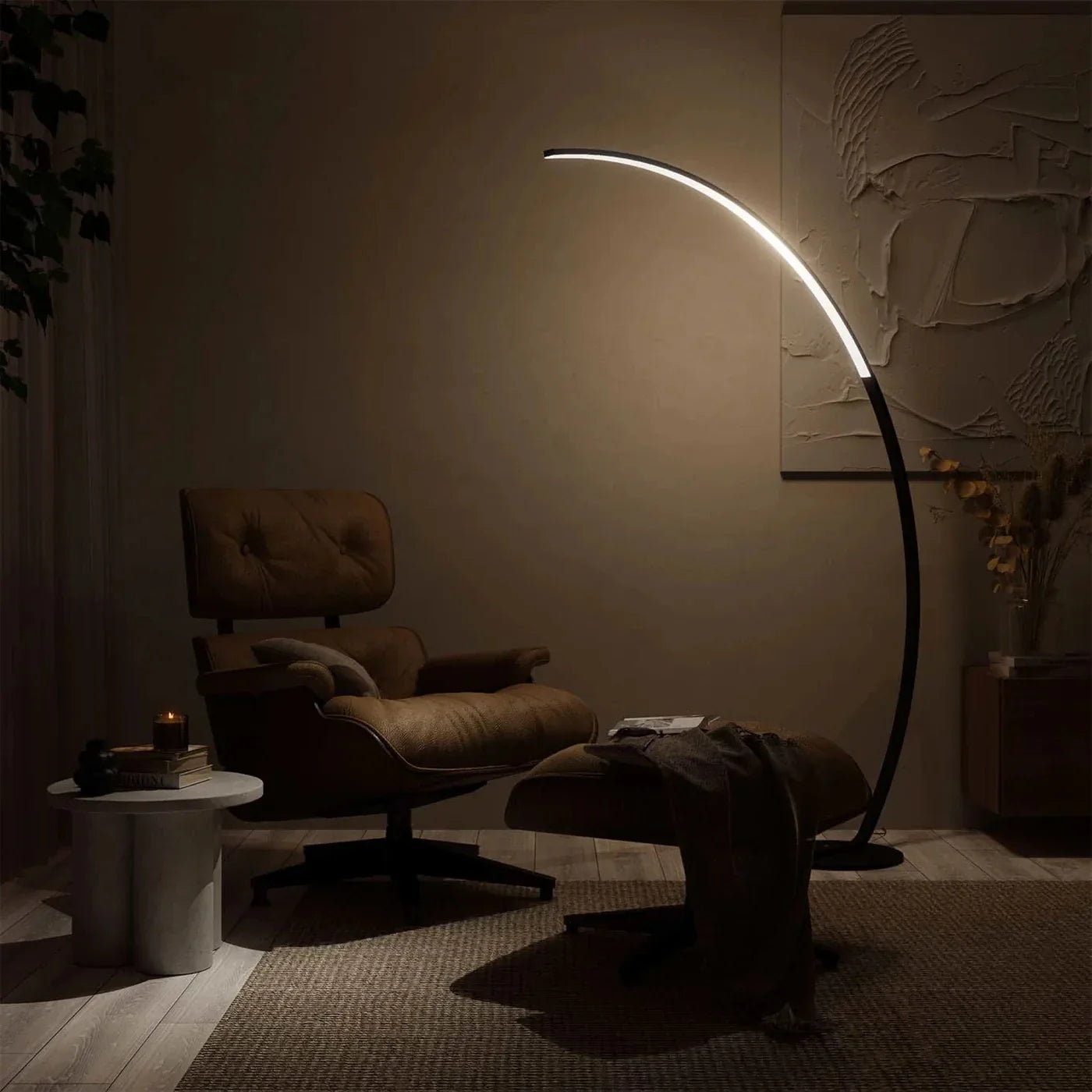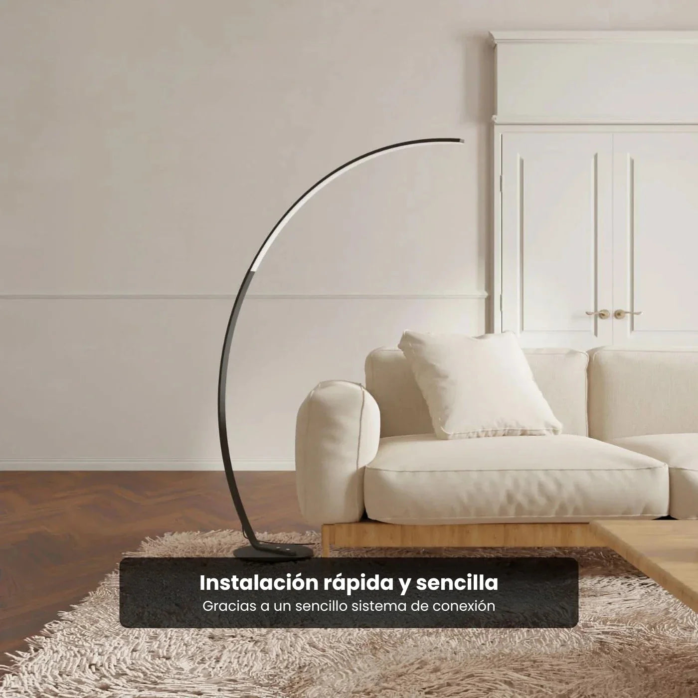 Con su arco elegante y perfil minimalista, Solvra atrae la mirada sin imponer su presencia. El acabado negro mate transmite una estética moderna y atemporal, mientras que su trayectoria curva de luz ofrece una iluminación suave y dirigida que transforma cualquier rincón en un lugar con alma.
